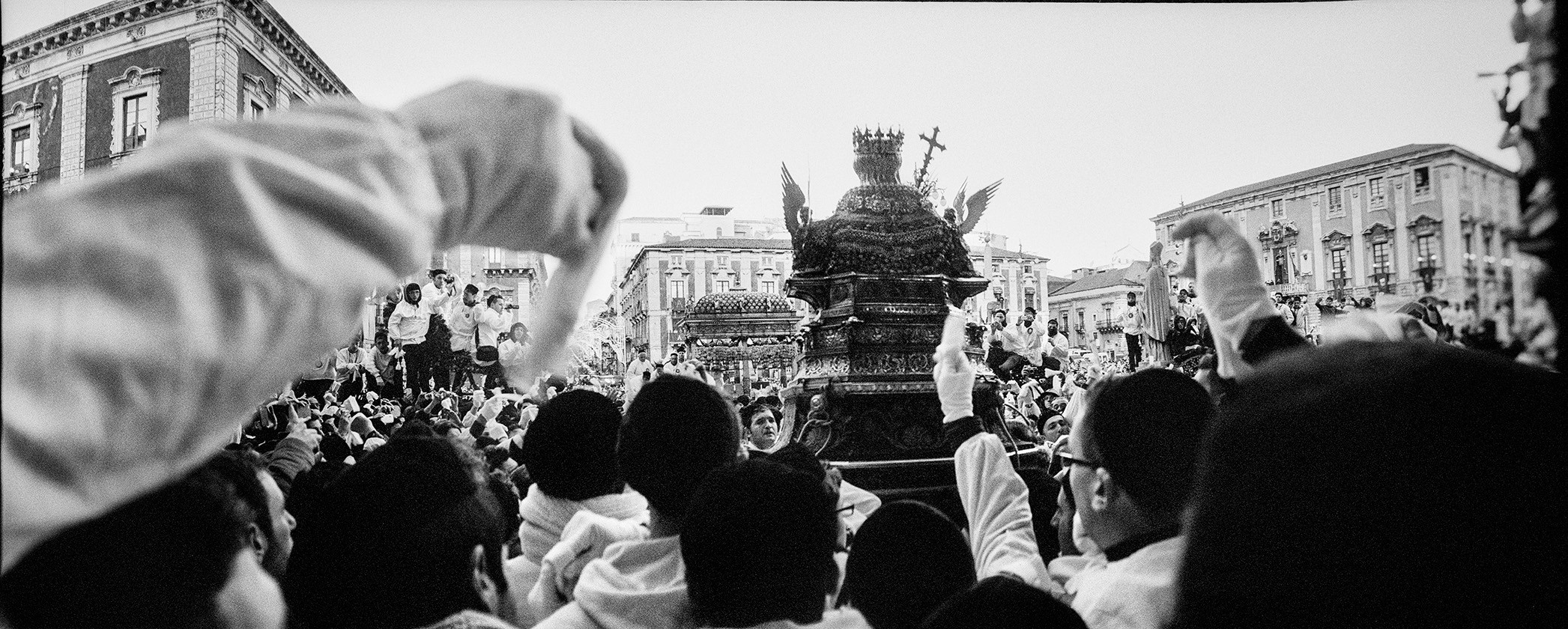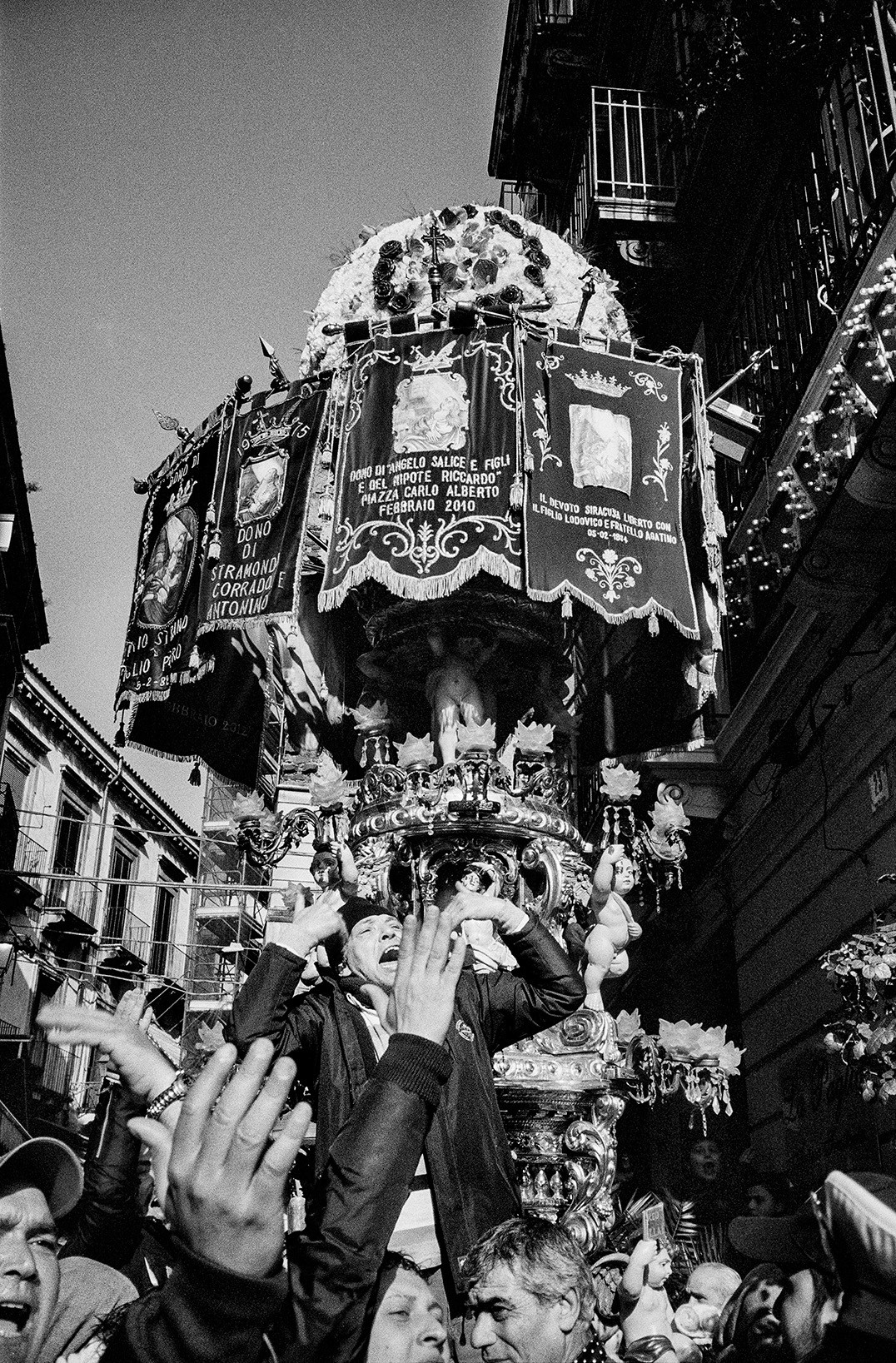 Massimo photographed for years the members of the Cero dei Macellai during the three days of celebrations for Saint Agatha, the patron saint venerated by the city of Catania.